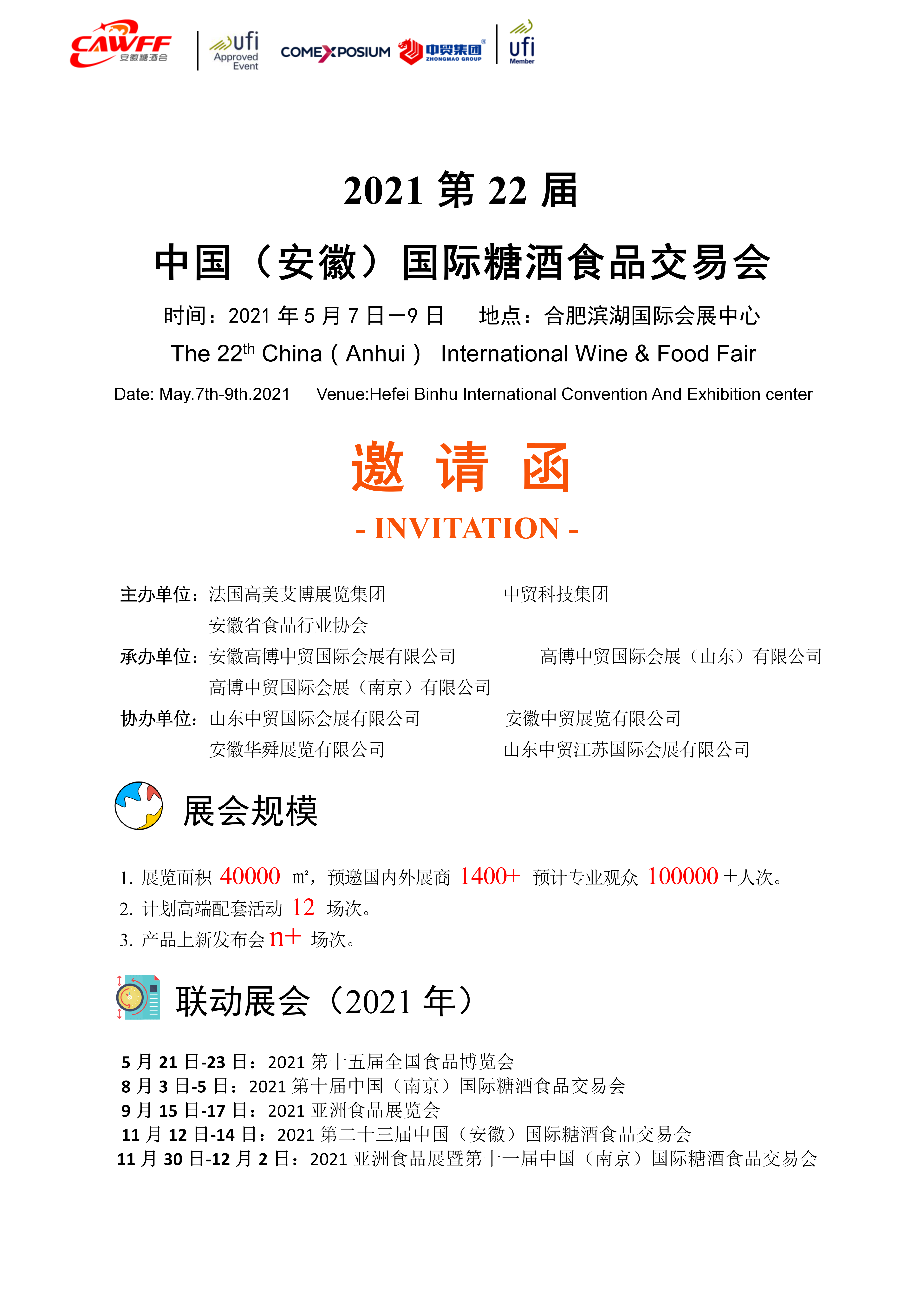 2021第22屆 中國(安徽)國際糖酒食品交易會-邀請函