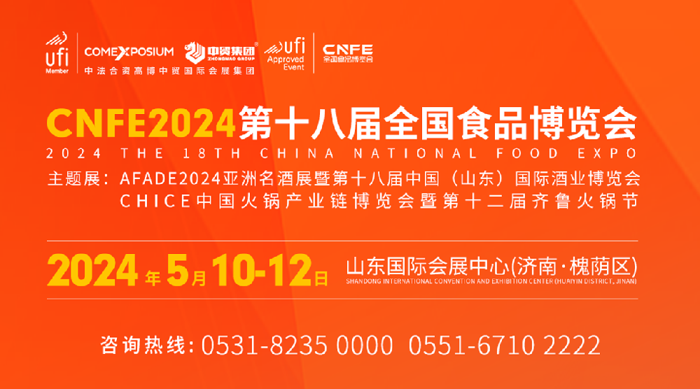 CNFE2024第十八屆全國食品博覽會將于2024年5月10日-12日在濟南市山東國際會展中心(槐蔭區(qū))盛大舉辦?!局黝}展:AFADE2024亞洲名酒展暨第十八···
