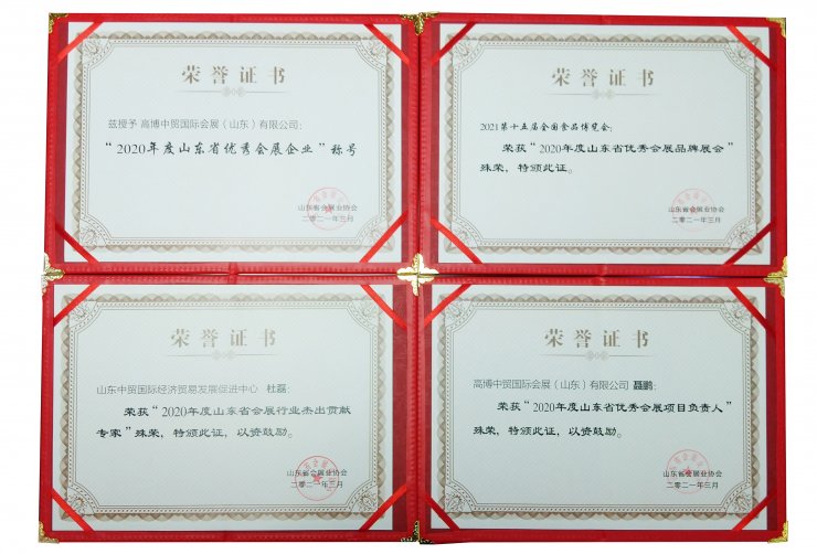 2021第十五屆全國(guó)食品博覽會(huì)榮獲“2020年度山東省優(yōu)秀會(huì)展品牌展會(huì)”殊榮